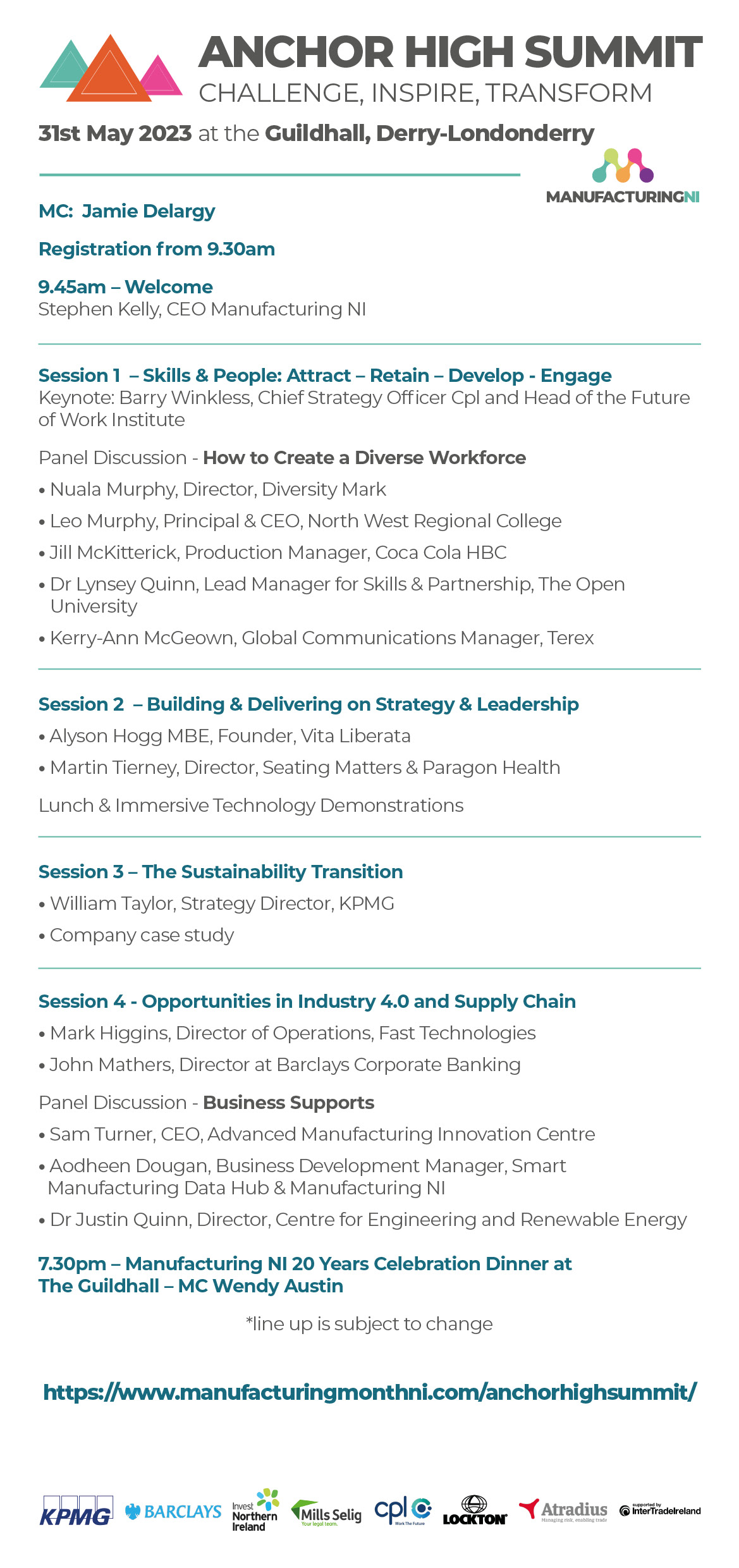 The Summit will be followed in the evening by the prestigious Manufacturing NI Hall of Fame Awards, celebrating titans of the local manufacturing sector who have significantly and sustainably shaped NI’s industrial landscape.